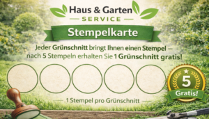 Wir haben uns über die letzten Jahre ein Stempelkarten System für Sie überlegt. Dabei bekommen Sie von uns pro Grünschnitt den wir bei Ihnen erledigen einen Stempel auf Ihrer Stempelkarte. Wenn Sie 5 Stempel gesammelt haben können diese gegen einen kostenlosen Grünschnitt inklusive Entsorgung bei uns eingelöst werden.